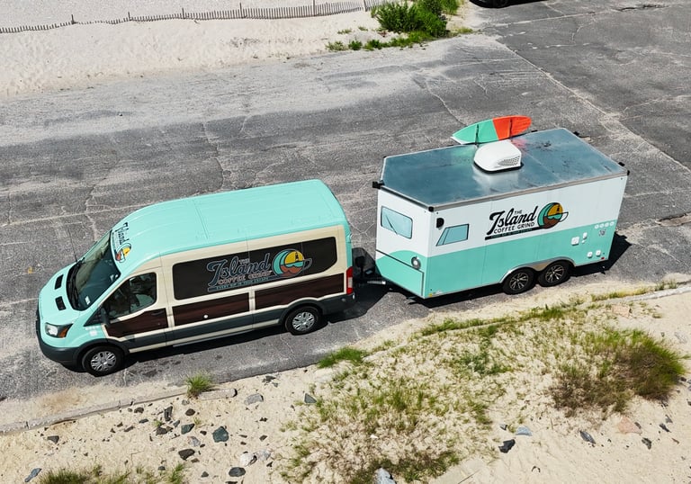 At The Island Coffee Grind, we bring a unique mobile coffee experience to your events. Our vintage trailer not only serves delicious beverages but also adds a charming surf vibe to any occasion. Enjoy every sip!